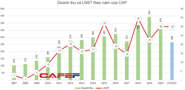 Tính chung 2 quý đầu năm tài chính 2020-2021 CAP đạt 266,3 tỷ đồng doanh thu, tăng 37% so với cùng kỳ. Lợi nhuận sau thuế đạt gần 30 tỷ đồng, gấp 2,4 lần lợi nhuận đạt được nửa đầu năm trước đó. EPS đạt 5.710 đồng.