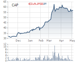 Cổ đông công ty cũng hưởng lợi lớn khi giá cổ phiếu CAP vẫn duy trì ở mức cao. Tính từ đầu năm 2021 đến nay CAP đã tăng khoảng 56%, lên mức 56.100 đồng/cổ phiếu như hiện nay. Trong đó thời điểm giá cao nhất vượt ngưỡng 60.000 lên gần 62.700 đồng/cổ phiếu (đóng cửa phiên giao dịch ngày 15/3/2021).